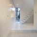 吹き抜けに直進した光はまるで子供の様に階段の間をすり抜け、1Fの廊下や玄関周りに拡散しながら遊ぶ。