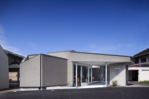 軸線を斜めに振ることで、インパクトのある外観を実現しながら、スタッフ動線の短縮を図っています。